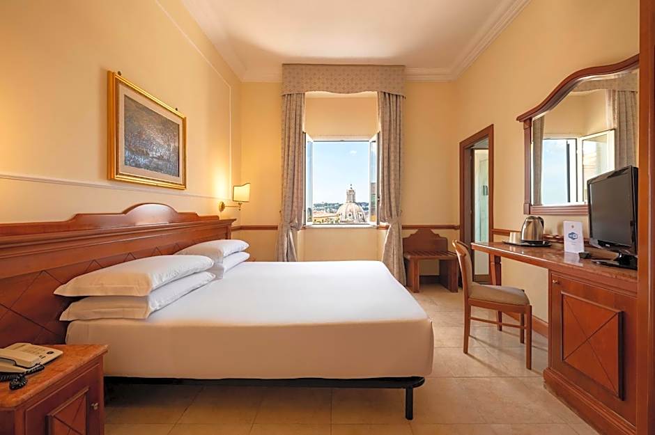 Offering views over Rome, this air-conditioned room features a flat-screen satellite TV, mini-bar and private bathroom with free toiletries.